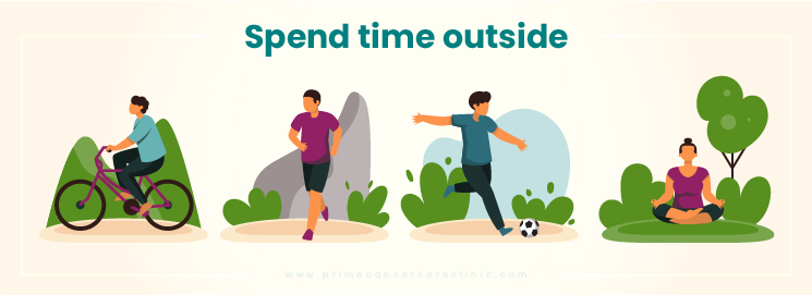 2. Spend time outside: You will be surprised by what the fresh air, sunlight and tranquillity of nature can do for your mood. Stress, by its very nature, leads us to isolate ourselves from family and friends. With the bad news, you may feel defeated and would wish to stay by yourself in the house waiting for death. On the contrary, you need to spend time outside and engage in normal chit chat. It will give you the drive to live through your cancer treatment and recovery.